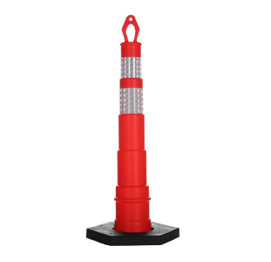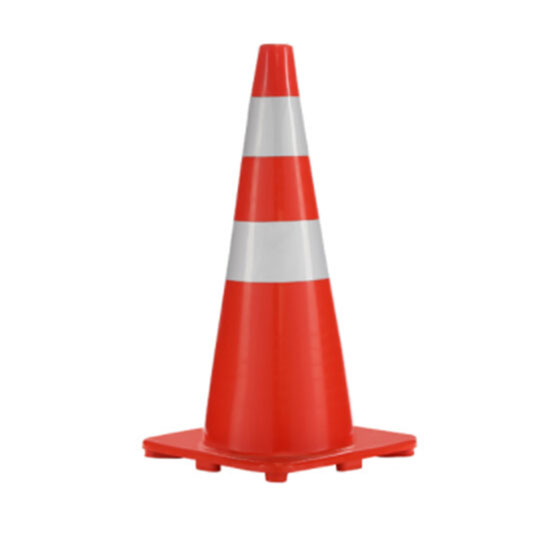 Fabricado en polietileno de alta intensidad resistente a impactos y golpes fuertes. Cuenta con dos cintas reflectivas y adicionalmente puede ser utilizado con lastre a base de caucho reciclado color negro.